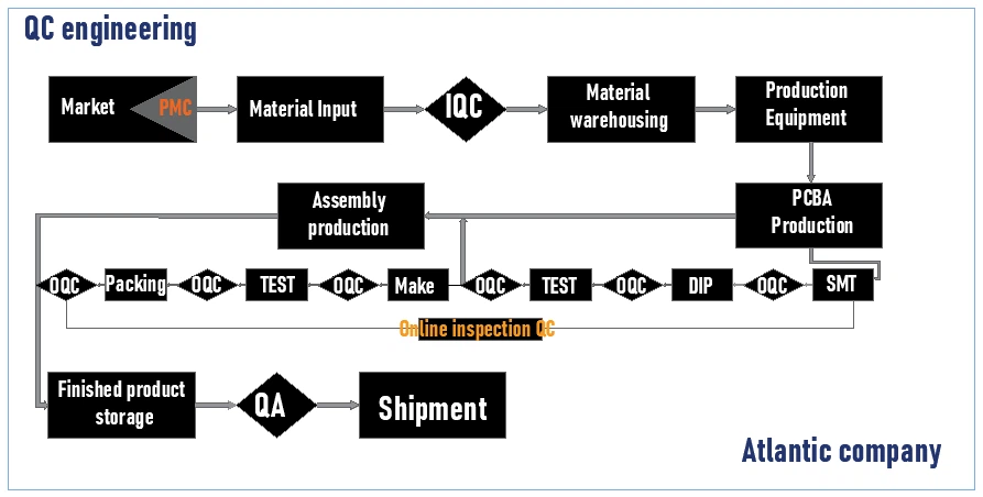 Material preparation: including procurement, inspection, and storage of raw materials. Raw materials can include electronic components, semiconductor chips, circuit boards, plastic casings, etc. Manufacturing process: Manufacturing of printed circuit boards (PCBs), component mounting, soldering, assembly, and other processes. These processes typically require the use of automated equipment and robots to complete. Debugging and testing: After assembly, debug and test electronic products to ensure their proper functionality. This includes functional testing, reliability testing, temperature testing, etc. Packaging and quality inspection: By packaging, finished electronic products are protected and labeled for easy transportation and sales. At the same time, quality inspection is also necessary to ensure that the product meets the quality standards. Logistics and warehousing: Classify, package, and transport finished products to meet customer needs. At the same time, it is necessary to manage and maintain storage facilities to ensure the safety and traceability of products.